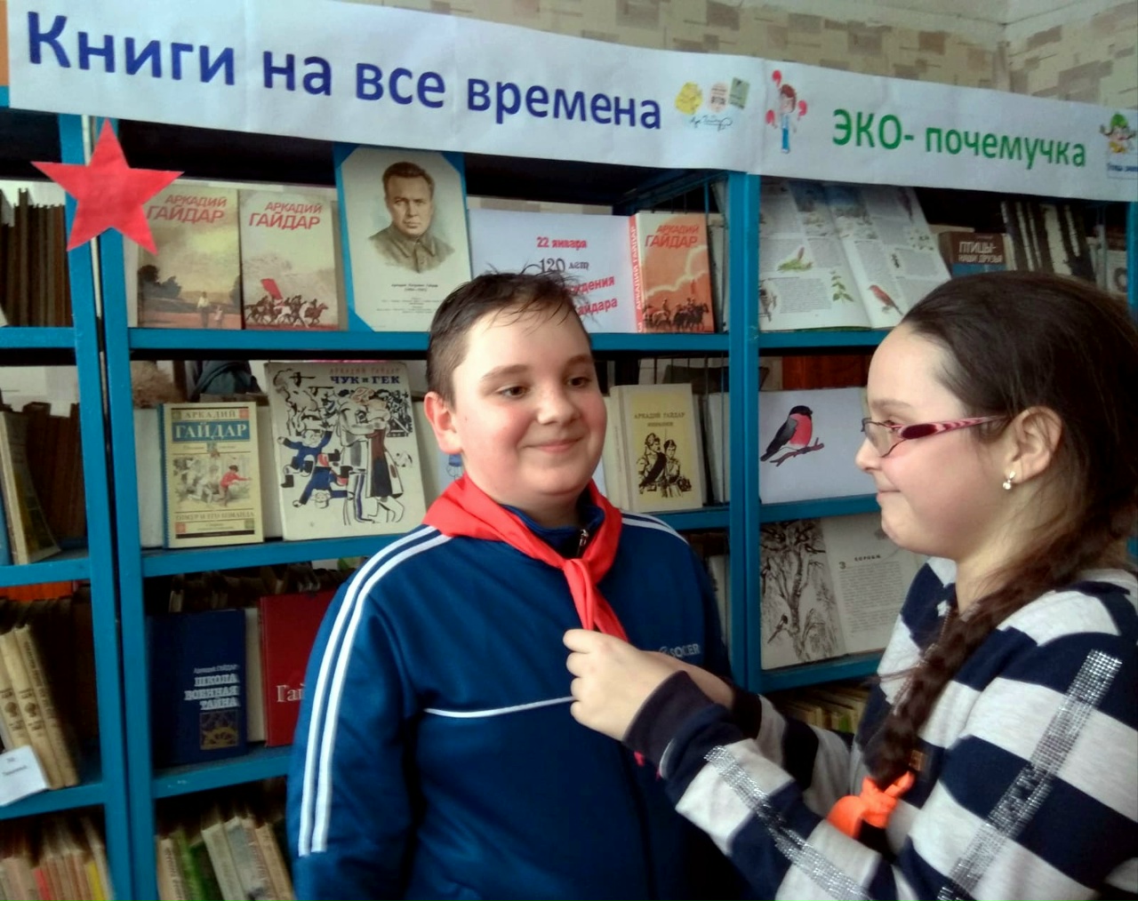 В этот день библиотекари знакомили ребят с биографией Аркадия Гайдара, рассказывали о тимуровском движении, возникшем благодаря одной из самых известных книг писателя «Тимур и его команда».